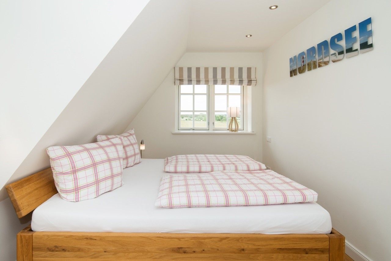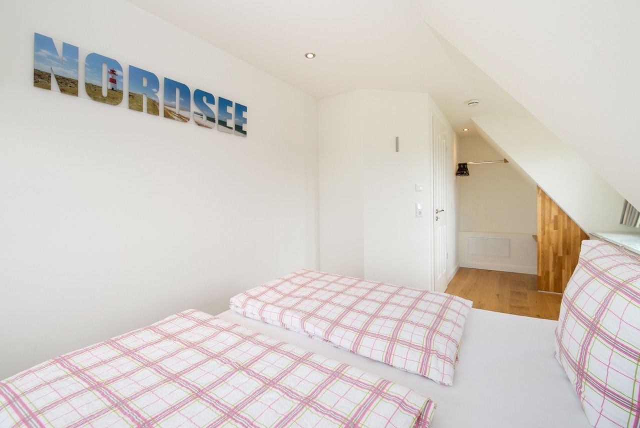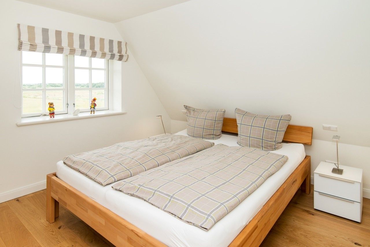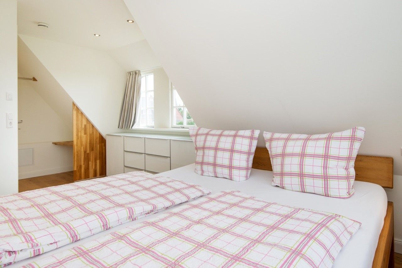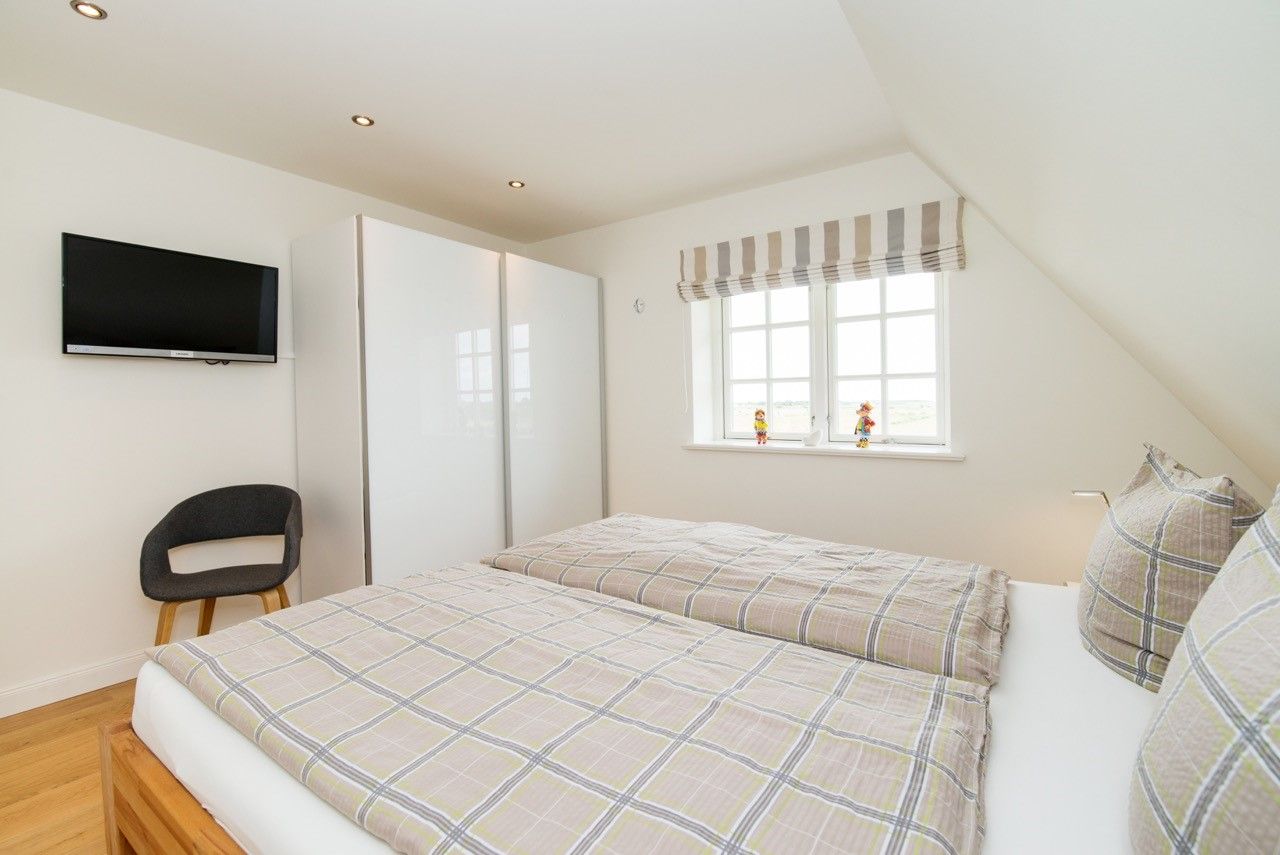 Die Schlafzimmer liegen im Obergeschoss und verfügen über je ein Doppelbett (180 x 200 und 200 x 220) sowie genügend Stauraum. Ein Schlafzimmer ist mit einem Flachbildfernseher ausgestattet.
