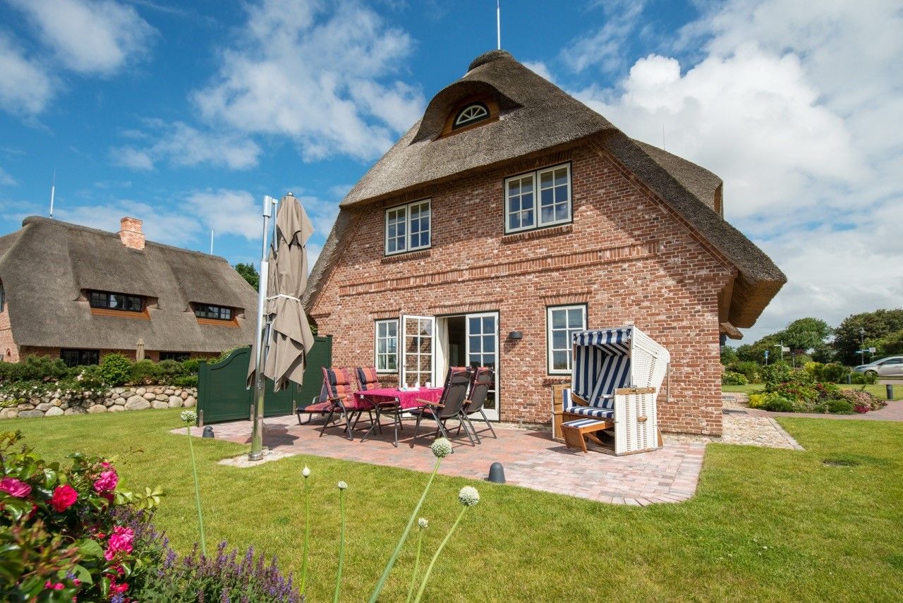 Über die Südterrasse gelangen Sie in den angrenzenden Garten. Strandkorb, Gartenmöbel sowie passende Auflagen sind vorhanden.